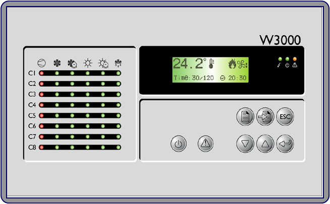2. 機(jī)組控制與運(yùn)行管理:先進(jìn)的W3000 微電腦智能控制系統(tǒng),內(nèi)置克萊門特特殊設(shè)計(jì)的控制算法,更加突出機(jī)組的節(jié)能性和可靠性:FIFO 壓縮機(jī)運(yùn)行時(shí)間均衡功能,延長整機(jī)壽命;自動負(fù)荷調(diào)整輸出功能,節(jié)能節(jié)電;通過與壓縮機(jī)的減載系統(tǒng)相配合,實(shí)現(xiàn)25-100%無級調(diào)節(jié);運(yùn)行參數(shù)調(diào)整和設(shè)定,適應(yīng)不同環(huán)境應(yīng)用;溫度壓力保護(hù)采用模擬量測量,可以預(yù)測預(yù)防故障發(fā)生,增加可靠性。